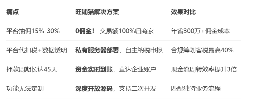 二、旺铺猫商城系统方案:免抽佣+数据自主的私域堡垒