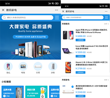 线上引流,线下体验,一店两铺拓展商机,网络营销、全员营销、全天候营销。数码家电小程序微商城,通过交易管理、商品管理、库存管理、营销管理,帮助数码家电行业建立自动化的订单及库存处理流程,提高新零售时代下的数码家电企业的工作效率。